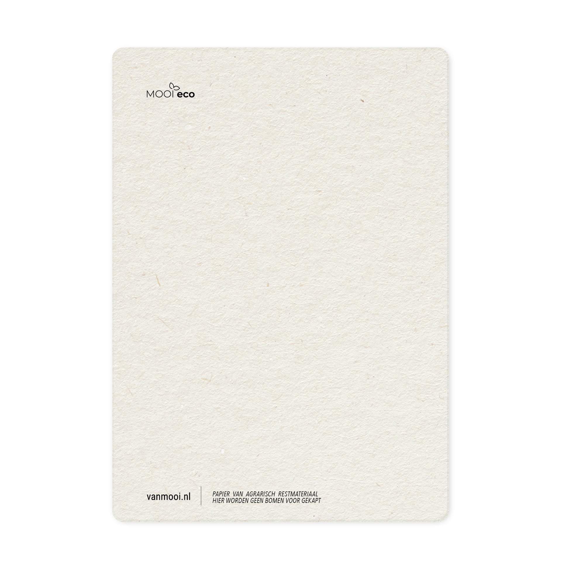 Een mooie duurzame enkele kaart, gemaakt in onze grafische studio. Gedrukt op Paperwise Naturel, boomvrij papier van landbouwrestafval.