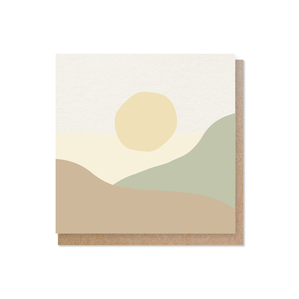 Een set mooie duurzame dubbele wenskaarten met minimalistische aesthetic vormen. De illustraties zijn gemaakt in onze grafische studio. Gedrukt op Paperwise Naturel, boomvrij papier van landbouwrestafval. Inclusief gerecyclede envelop (155 x 155 mm).