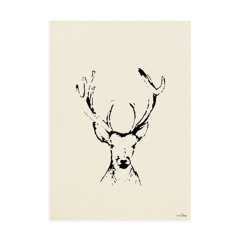 Een mooie duurzame poster met een afbeelding van een hert. De illustraties zijn gemaakt in onze grafische studio. Gedrukt op Paperwise Naturel, boomvrij papier van landbouwrestafval.